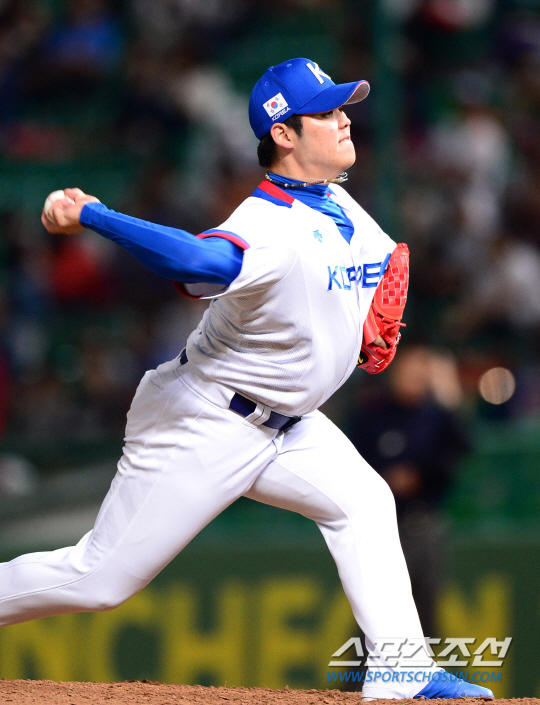 27일 인천 문학야구장에서 2014 인천아시아경기대회 야구 준결승전 대한민국과 중국의 경기가 열렸다. 한현희가 9회 마운드에 올라 힘차게 투구하고 있다.