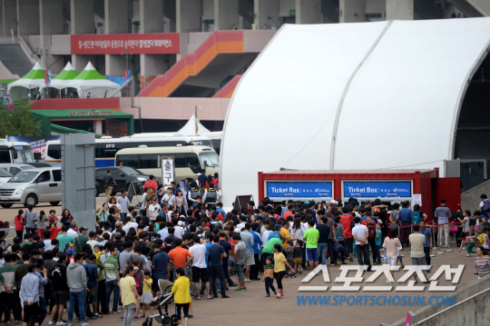 28일 인천 문학구장에서 예정된 2014 인천 아시안게임 야구 결승전 한국과 대만의 경기를 보기 위해 현장 매표소를 찾은 야구팬들이 줄을 선 채 티켓오픈을 기다리고 있다.