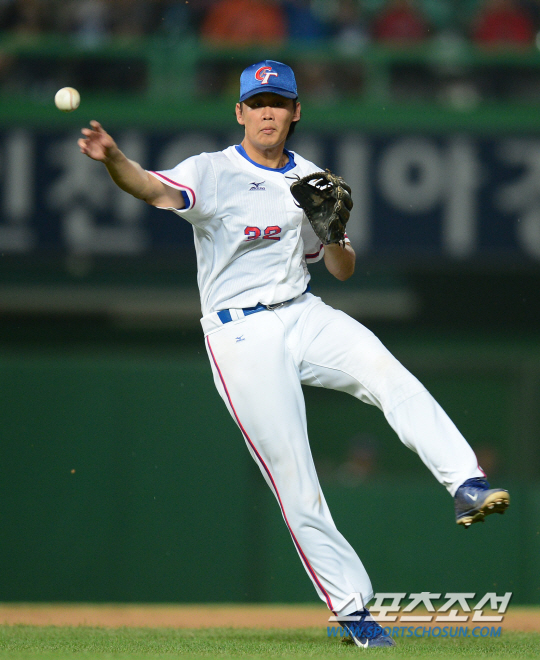인천아시안게임 야구 한국과 대만의 결승전 경기가 28일 인천구장에서 열렸다. 4회초 2사 한국 나성범의 땅볼을 대만 유격수 판즈팡이 잡아 1루로 던져 아웃시키고 있다.