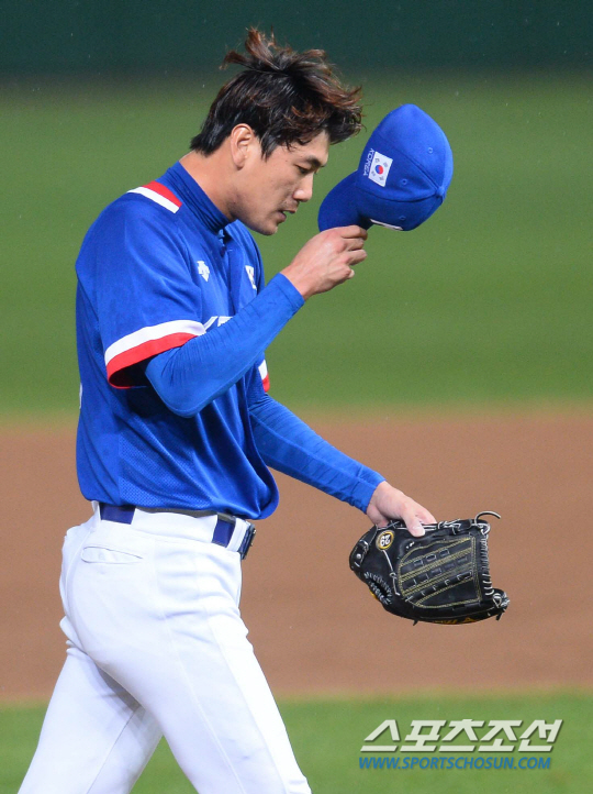 한국야구대표팀과 대만야구대표팀의 2014인천아시안게임 야구결승전이 28일 인천문학야구장에서 열렸다. 한국 선발투수 김광현이 대만 6회말 2사 3루에서 궈옌원에게 중견수 희생타로 역전을 허용하고 있다.
