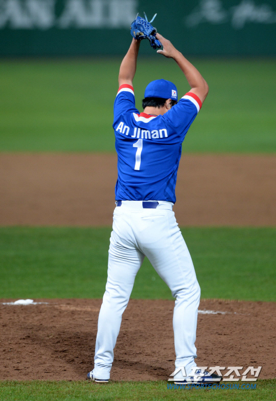 2014 인천 아시안게임 야구 결승전 한국과 대만의 경기가 28일 인천 문학구장에서 열렸다. 7회말 무사 1,3루의 위기를 무실점으로 막아낸 안지만이 환호하고 있다.