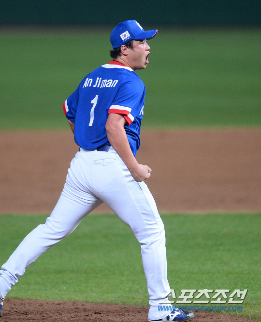 한국야구대표팀과 대만야구대표팀의 2014인천아시안게임 야구결승전이 28일 인천문학야구장에서 열렸다. 안지만이 8회말 2사에서 궈옌원을 삼진처리하며 이닝을 마치고 있다.