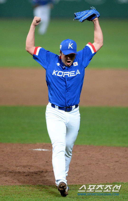2014 인천 아시안게임 야구 결승전 한국과 대만의 경기가 28일 인천 문학구장에서 열렸다. 8회말 2사 안지만이 마지막 타자를 삼진처리하며 무실점으로 이닝을 마친 후 포효하고 있다.