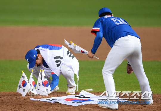 [AG포토] 마운드에 태극기 꽂는 김광현
