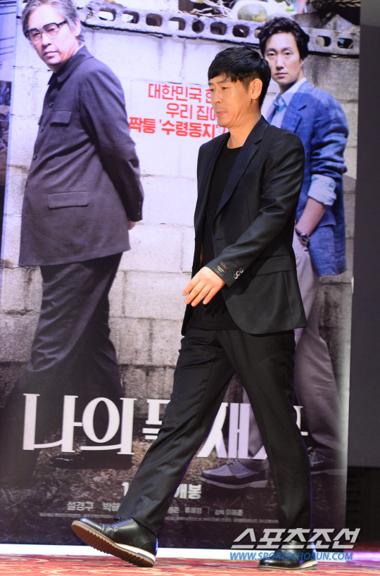 배우 설경구가 29일 건대 롯데시네마에서 열린 영화 '나의 독재자' 제작발표회에 참석하고 있다. 영화 '나의 독재자'는 대한민국 한복판, 자신을 김일성이라고 굳게 믿는 남자와 그런 아버지로 인해 인생이 꼬여버린 아들의 이야기를 그린 작품으로 설경구와 박해일이 연기대결을 펼친다.