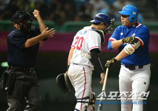 대만은 여기서 투수를 뤄지아런으로 바꿨다. 벤치의 다소 조급한 결정. 이건 한국에 오히려 도움이 됐다. 제구력이 흔들린 뤄지아런은 박병호를 볼넷으로 내보낸 뒤 강정호의 팔꿈치를 맞혀 밀어내기로 동점을 허용했다. 이어 나성범이 내야 땅볼로 3루주자 김현수를 홈에 불러들였고, 다시 황재균의 2타점 우전 적시타로 6-3을 만들었다. 안타 3개와 볼넷, 사구, 내야땅볼을 묶어 한꺼번에 4점을 뽑아 전세를 뒤집은 것.