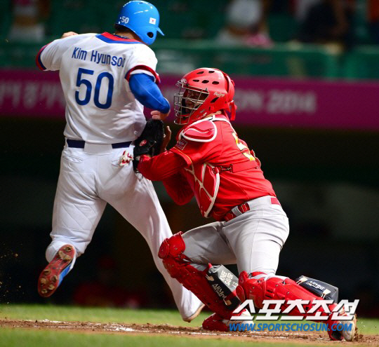 결승전에서는 3:2로 뒤진 7회말 선두 타자 쟝즈시엔의 타구를 1루수 박병호가 포구하지 못했습니다. 기록상으로는 2루타였지만 실책성 플레이였습니다. 이어 왕포롱의 우전 안타로 맞이한 무사 1, 3루의 실점 위기에서 구원 등판한 안지만이 틀어막지 못했다면 점수 차가 벌어져 금메달을 놓칠 뻔 했습니다. 박병호는 9회말 1사 후 쟝즈시엔의 땅볼 타구를 포구하는 과정에서 한 차례 더듬는 등 수비가 불안했습니다.