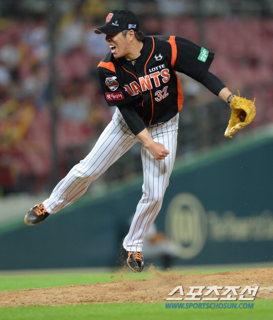 KIA와 롯데의 주말 3연전 마지막 경기가 13일 광주 기아챔피언스필드에서 열렸다. 롯데가 옥스프링의 8이닝 무실점 호투로 2대0 승리를 거두고 주말 3연전을 위닝시리즈로 가져갔다. 9회말 등판한 롯데 김승회가 힘차게 공을 던지는 모습. 광주=허상욱 기자 wook@sportschosun.com