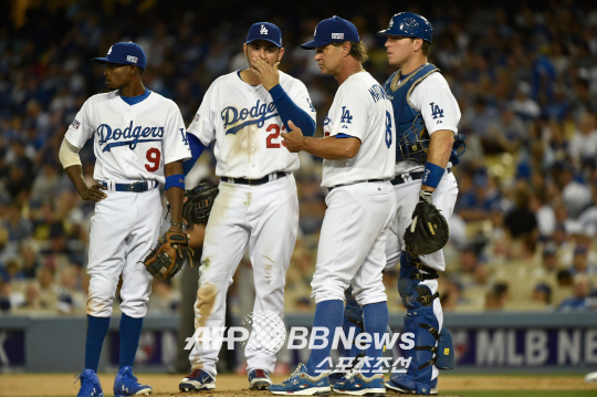 | LA 다저스 돈 매팅리 감독이 4일(한국시각) 열린 세인트루이스 카디널스와의 디비전시리즈 1차전에서 7회초 선발 클레이튼 커쇼를 내리고 구원투수를 불러올리고 있다. ⓒAFPBBNews = News1 |