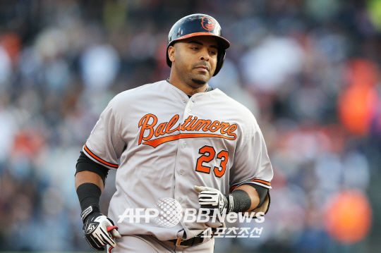 볼티모어 넬슨 크루즈는 투런 홈런을 쏘아올렸다. 이번 시리즈 두 번 째 홈런이다. ⓒAFPBBNews = News1