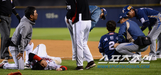 2014 프로야구 LG트윈스와 NC다이노스의 경기가 6일 잠실야구장에서 열렸다. NC 9회초 2사에서 박민우가 내야땅볼을 치고 1루수 박경수와 충돌하며 세이프 되고 있다. 잠실=최문영 기자 deer@sportschosun.com /2014.10.06/ |