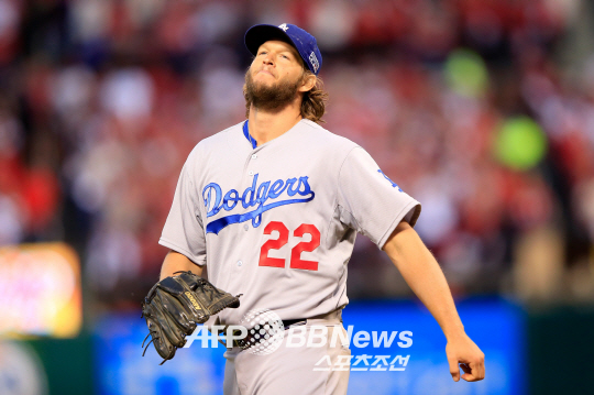 | LA 다저스 클레이튼 커쇼가 8일(한국시각) 세인트루이스 카디널스와의 디비전시리즈 4차전에서 2-0으로 앞선 7회말 맷 애덤스에게 역전 3점포를 얻어맞은 뒤 허탈한 표정을 짓고 있다. ⓒAFPBBNews = News1 |