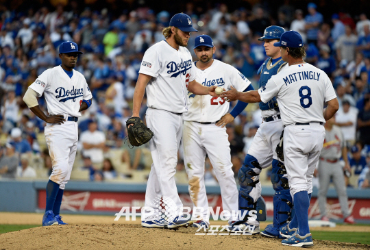 | LA 다저스 돈 매팅리 감독은 8일(한국시각) 세인트루이스 카디널스와의 디비전시리즈 4차전서 선발투수 클레이튼 커쇼를 7회에도 내보낸 이유에 대해 "그가 더 던질 수 있었고, 이전까지 잘 던져왔다. 더 좋은 투수가 없었다"고 했다. ⓒAFPBBNews = News1 |