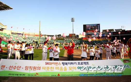 SK는 개막전부터 10월 11일까지 홈경기마다 팬, 선수단, 구단 임직원에게 행복티켓을 판매해 왔으며, 이를 통해 모금한 행복티켓으로 인천광역시 아동복지협회 등 40여개 기관의 어린이들을 이날 문학구장으로 초청하게 됐다.