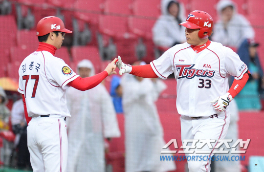 KIA 타이거즈 김주형이 개인 시즌 7호 홈런을 팀 3400홈런으로 장식했다.