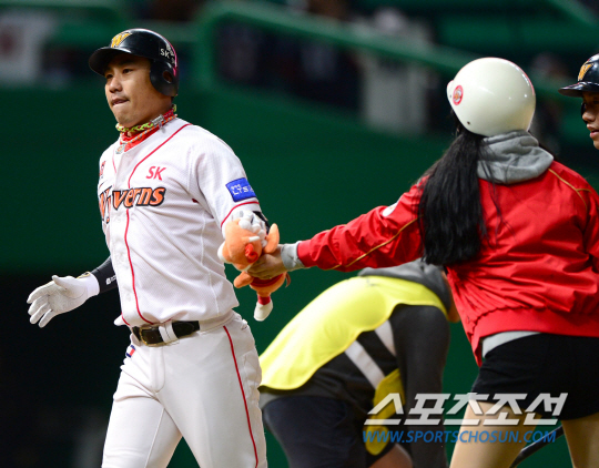 13일 인천 문학구장에서 프로야구 SK와 두산의 경기가 열렸다. SK 김강민이 8회 1사 2루에서 두산 함덕주를 상대로 역전 투런 홈런을 날렸다. 홈에 들어오고 있는 김강민. 인천=송정헌 기자 songs@sportschosun.com