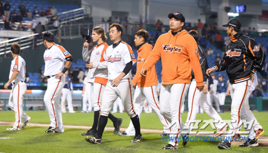 2014 프로야구 한화이글스와 두산베어스의 경기가 10일 대전한밭운동장야구장에서 열렸다. 두산에 3대7로 패해 3연승이 좌절된 한화선수들이 경기장을 빠져나가고 있다. 대전=최문영 기자 deer@sportschosun.com /2014.10.10/
