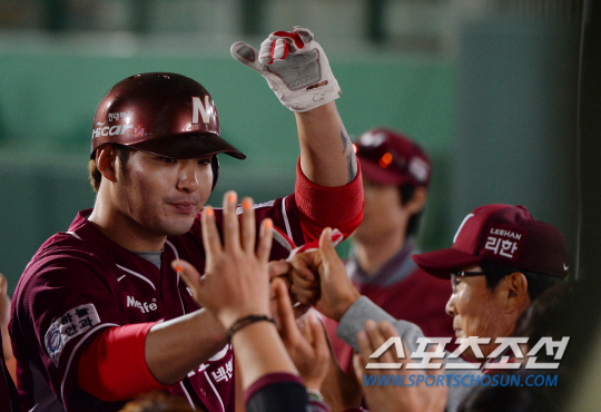 2014 프로야구 롯데자이언츠와 넥센히어로즈의 경기가 14일 부산사직야구장에서 열렸다. 넥센 5회초 2사 2루에서 박병호가 좌중월 투런홈런을 치고 홈인하고 있다. 이로써, 박병호는 한시즌 50홈런이라는 대기록을 달성했다. 부산=최문영 기자 deer@sportschosun.com