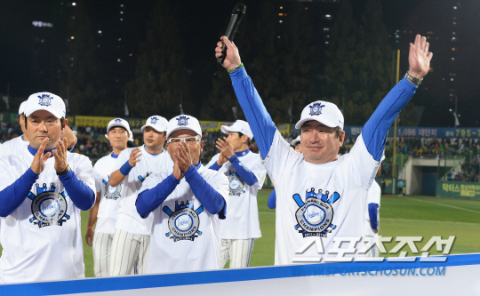 2014 프로야구 삼성라이온즈와 LG트윈스의 경기가 15일 대구시민운동장 야구장에서 열렸다. 류중일 감독과 삼성 코치진이 LG를 상대로 5대3으로 승리해 정규리그 우승을 확정짓고 환호하고 있다. 대구=최문영 기자 deer@sportschosun.com /2014.10.15/ |