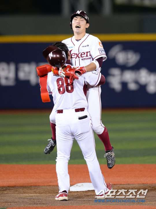 1회말 첫 타자로 나온 서건창은 SK 선발 채병용과 맞선 2B1S에서 몸쪽으로 파고드는 138㎞짜리 직구를 가볍게 공략했고, 이 공은 1루수 박정권의 키를 넘어 우익수 옆에 떨어지는 2루타가 됐다. 관중석에선 큰 환호가 나왔고, 1루 주루코치 심재학 코치는 2루로 달려가 서건창을 번쩍 안아올렸다. 서건창은 헬맷을 벗어 관중들에게 인사를 했다. 유한준의 안타 때 홈에 들어온 서건창은 덕아웃에서 마치 홈런을 치고 들어온 것처럼 동료들로부터 도열 세리머니를 받기도 했다.