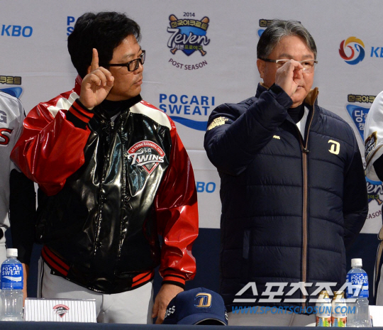 NC 다이노스와 LG 트윈스가 19일 마산구장에서 열리는 1차전을 시작으로 대망의 2014 시즌 프로야구 준플레이오프를 치른다. NC 김경문 감독과 LG 양상문 감독, 그리고 양팀 주축 선수들은 18일 마산종합운동장 내 올림픽기념관에서 미디어데이 행사를 치렀다.