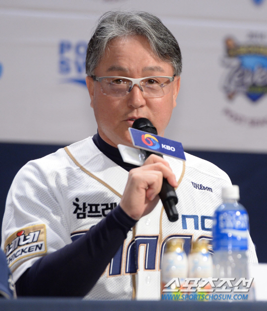 NC와 LG의 2014 프로야구 준플레이오프 미디어데이가 18일 창원 마산종합운동장 내 올림픽 기념 공연장에서 열렸다. NC 김경문 감독이 질문에 답하고 있다. 양팀 감독과 대표선수들의 공식 기자회견과 포토타임 등이 진행되는 미디어데이 행사에는 NC 김경문 감독과 주장 이호준, 손민한이 LG는 양상문 감독과 주장 이진영과 신정락이 참석했다. 창원=허상욱 기자 wook@sportschosun.com/2014.10.18/ |