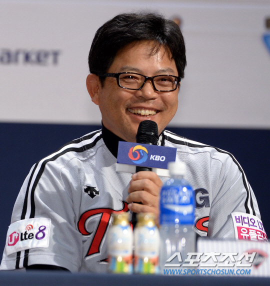 NC와 LG의 2014 프로야구 준플레이오프 미디어데이가 18일 창원 마산종합운동장 내 올림픽 기념 공연장에서 열렸다. LG 양상문 감독이 질문에 답하고 있다. 양팀 감독과 대표선수들의 공식 기자회견과 포토타임 등이 진행되는 미디어데이 행사에는 NC 김경문 감독과 주장 이호준, 손민한이 LG는 양상문 감독과 주장 이진영과 신정락이 참석했다. 창원=허상욱 기자 wook@sportschosun.com/2014.10.18/