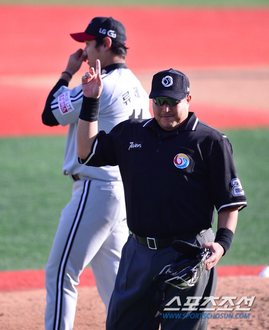 양상문 LG 감독도 그라운드로 나와 최 주심과 한참 이야기를 나눴다. 하지만 규정대로 처리한 일에 대해 항의할 수는 없다. 다음 투수가 좀 더 준비할 수 있는 시간을 벌기 위한 행동이었다. LG에는 갑작스러운 위기, NC에는 전세 역전의 기회였다.