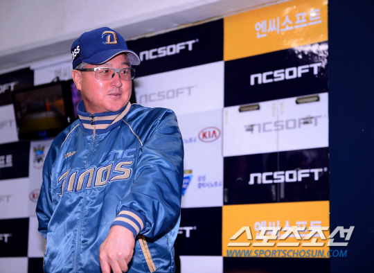 21일 경남 창원 마산구장에서 프로야구 준플레이오프(준PO) 2차전 NC다이노스와 LG트윈스의 경기가 펼쳐진다. 20일 준PO 2차전 경기는 우천으로 연기됐다. 연기 된 경기는 21일 마산구장에서 다시 열릴 예정이다. NC 김경문 감독이 덕아웃에서 기자들과 대화를 나누고 있다. 창원=송정헌 기자 songs@sportschosun.com/2014.10.21