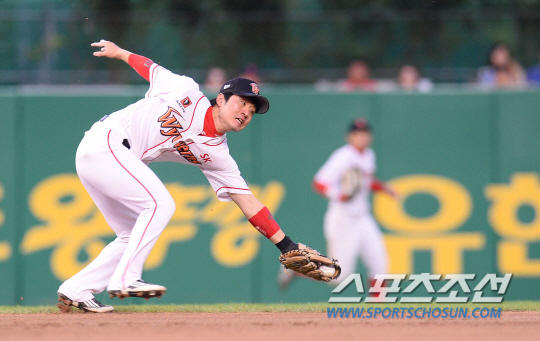 2014 프로야구 SK와이번스와 KIA타이거스의 경기가 10일 인천문학야구장에서 열렸다. KIA 4회초 1사에서 SK 유격수 김성현이 김민우를 땅볼처리 하고있다. 문학=최문영 기자 deer@sportschosun.com /2014.07.10/ |