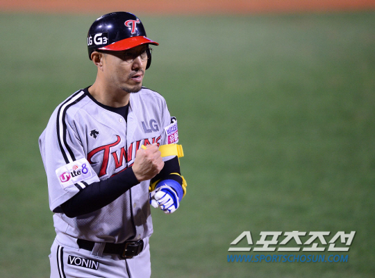 22일 경남 창원시 마산구장에서 프로야구 준플레이오프(준PO) 2차전 NC다이노스와 LG트윈스의 경기가 열렸다. 1회초 무사서 LG 정성훈이 좌중월 솔로홈런을 친 후 홈에서 주먹을 불끈 쥐고 있다. 창원=김경민 기자 kyungmin@sportschosun.com / 2014.10.22.