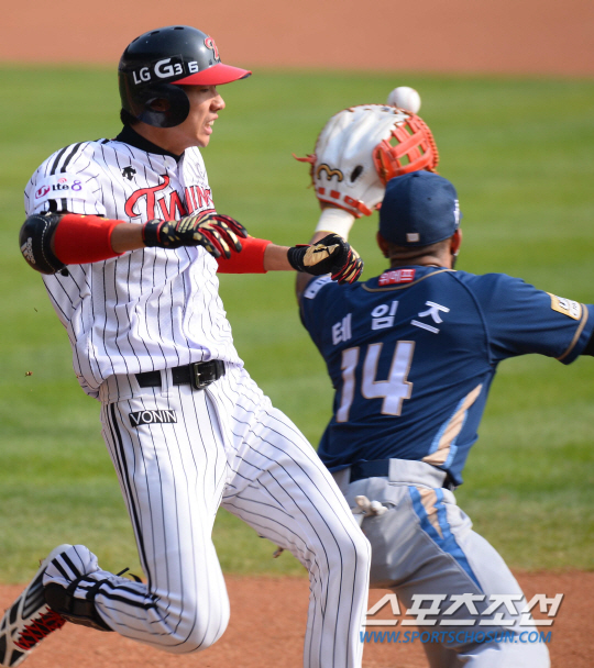2014 프로야구 NC다이노스와 LG트윈스의 준플레이오프 4차전 경기가 25일 잠실야구장에서 열렸다. LG 1회말 1사후 김용의가 내야안타를 치고 1루에서 세이프되고 있다. 잠실=최문영 기자 deer@sportschosun.com