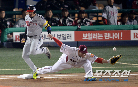 LG 트윈스 리드오프 정성훈이 1회초 선두타자 안타를 치며 자신의 포스트시즌 연속 기록을 이어갔다.
