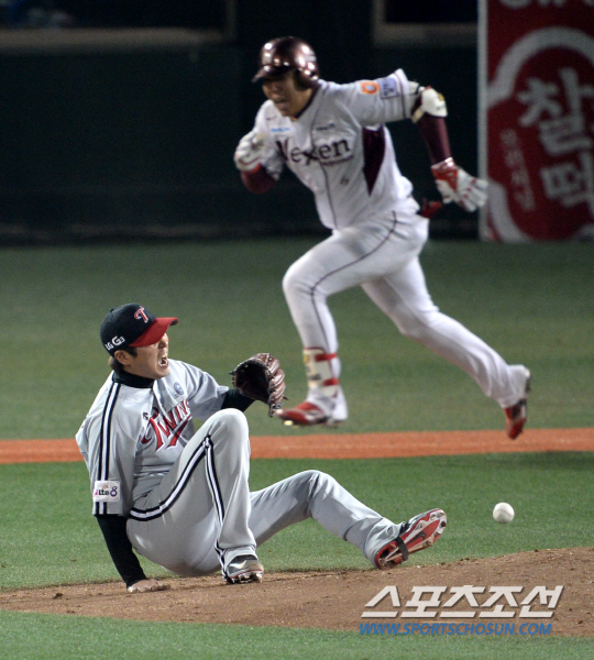 두 번째는 1루에서의 판정. 넥센쪽에서 세이프를 주장하며 합의 판정을 요구했다. 합의 판정 결과 아웃이 세이프로 번복됐다.