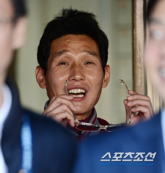 LG 트윈스와 넥센 히어로즈의 2014 프로야구 플레이오프 1차전이 27일 목동구장에서 열린다. 넥센 염경엽 감독이 눈가에 손가락을 대며 '주름이 많아 선글라스를 끼고 나오겠다'고 사진기자들을 향해 말하고 있다. 5전 3선승제로 치러지는 플레이오프에서 1차전 선발로 LG는 우규민을 넥센은 소사를 내세웠다. 목동=정재근 기자 cjg@sportschosun.com