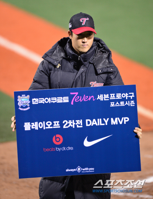 28일 서울 목동야구장에서 2014 프로야구 LG와 넥센의 플레이오프 2차전이 열렸다. 플레이오프 2차전 MVP로 선정된 LG 신정락이 포즈를 취하고 있다. 목동=김경민 기자 kuyngmin@sportschosun.com / 2014.10.28.
