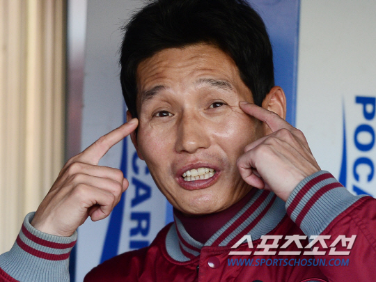 LG 트윈스와 넥센 히어로즈의 2014 프로야구 플레이오프 1차전이 27일 목동구장에서 열린다. 넥센 염경엽 감독이 눈가에 손가락을 대며 '주름이 많아 선글라스를 끼고 나오겠다'고 사진기자들을 향해 말하고 있다.목동=정재근 기자 cjg@sportschosun.com/2014.10.27/