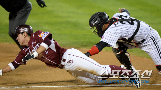 이번 포스트시즌 들어 기록한 자신의 첫 도루. 그러나 이어진 로티노의 우전안타로 3루까지 진루한 서건창은 유한준의 3루 땅볼때 홈으로 들어오다 런다운에 걸려 태그아웃을 당했다.