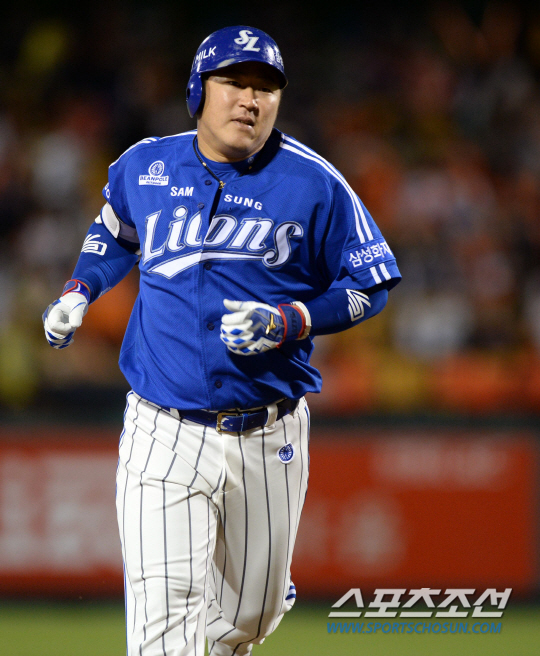 한화와 삼성의 2014 프로야구 경기가 13일 대전 한밭구장에서 열렸다. 3회초 2사 1루 삼성 최형우가 좌중간 담장을 넘어가는 2점홈런을 날린 후 베이스를 돌고 있다. 대전=허상욱 기자 wook@sportschosun.com/2014.10.13/