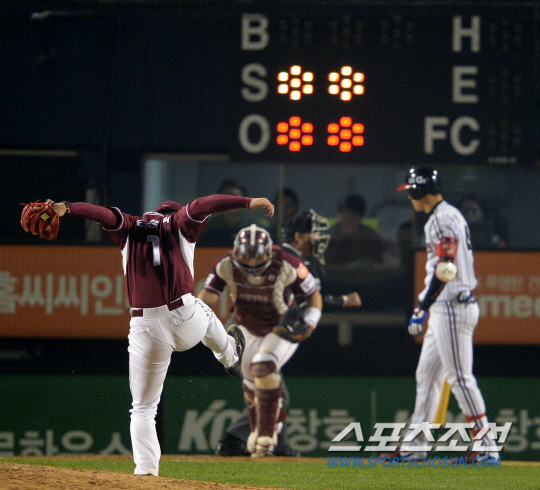30일 서울 잠실야구장에서 2014 프로야구 LG와 넥센의 플레이오프 3차전이 열렸다. 넥센 손승락이 LG 타자들을 상대로 힘차게 볼을 던지고 있다. 잠실=김경민 기자 kuyngmin@sportschosun.com / 2014.10.30.