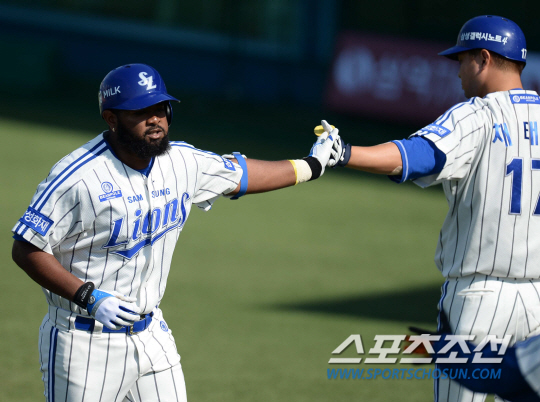 2014 프로야구 삼성라이온스와 NC다이노스의 경기가 9일 대구시민운동장 열렸다. 삼성 1회초 선두타자 나바로가 좌월 솔로홈런을 치고 홈인하고 있다. 대구=최문영 기자 deer@sportschosun.com