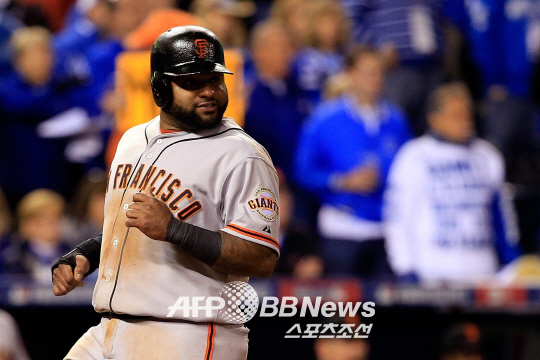 | FA 자격을 얻은 샌프란시스코의 파블로 산도발이 최소 6년의 계약기간을 원하는 것으로 알려졌다. 사진은 캔자스시티와의 월드시리즈 7차전서 4회 득점을 올리고 있는 산도발. ⓒAFPBBNews = News1 |
