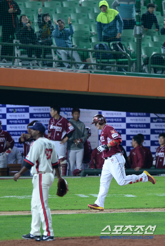넥센 박병호가 시즌 52호 홈런포를 날렸다. 15일 부산 사직구장에서 열린 롯데와 넥센의 2014 프로야구 경기에서 5회초 넥센 박병호가 롯데 유먼을 상대로 좌월 솔로홈런을 치고 베이스를 돌고 있다. 부산=허상욱 기자 wook@sportschosun.com/2014.10.15/