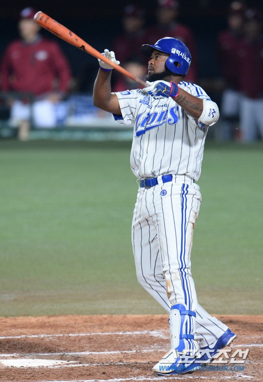 한국시리즈에서 나바로의 행보는 '모 아니면 도'에 가깝습니다. 1차전에서 홈런을 제외하면 3타수 무안타 2삼진이었습니다. 2차전은 홈런 외에도 2안타 1볼넷을 기록했지만 3차전은 4타수 무안타 1볼넷에 그쳤습니다. 4차전에서도 홈런을 제외하면 2타수 무안타였습니다. 15타수 5안타 0.333의 시리즈 타율을 기록 중이지만 3개의 홈런을 제외하면 안타는 2개뿐이며 그나마 2차전에 집중시킨 것입니다.