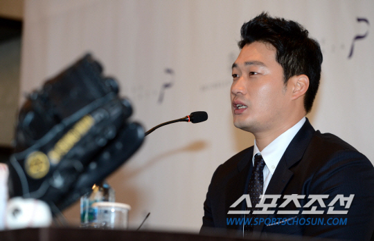 일본프로야구 데뷔 첫해를 성공적으로 마친 '끝판대장' 오승환(한신 타이거즈)이 13일 서울 태평로 더 플라자호텔에서 홍보대사 위촉식과 함께 기자회견을 가졌다. 오승환이 기자회견에서 질문에 답하고 있다. 삼성에서 지난시즌 후 일본 프로야구 한신에 입단한 오승환은 데뷔 첫해 64경기에 등판해 39세이브(2승4패) 평균자책점 1.76을 기록해 센트럴리그 구원왕에 올랐다. 히로시마 도요 카프와의 클라이맥스시리즈 퍼스트스테이지 2차전에서 3이닝 무실점으로 쾌투하며 파이널스테이지 1~3차전에서 3경기 연속 세이브를 챙겼고 클라이맥스시리즈 최우수선수(MVP)를 품에 안았다. 일본프로야구 포스트시즌에서 한국 선수가 MVP로 선정된 것은 오승환이 처음이다. 허상욱 기자 wook@sportschosun.com/2014.11.13/