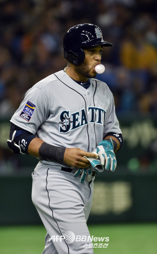 15일 일본대표팀과의 경기 7회 사구로 출루하고 있는 로빈슨 카노. ⓒAFPBBNews = News1