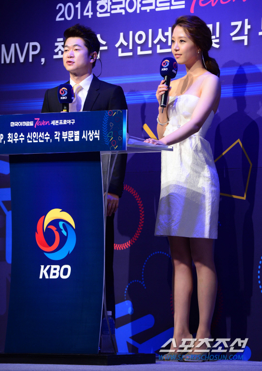 18일 오후 서울 양재동 더케이 호텔에서 2014 프로야구 최우수선수(MVP)/ 최우수신인선수 선정 및 각 부문별 시상식이 열렸다. 시상식에서 배지현-임경진 아나운서가 사회를 맡아 인사말을 하고 있다. 김경민 기자 kyungmin@sportschosun.com / 2014.11.18.