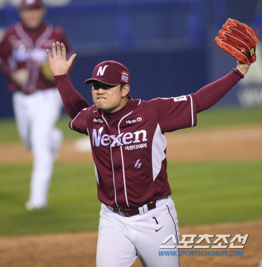 2014 프로야구 한국시리즈 5차전 삼성라이온즈와 넥센히어로즈의 경기가 10일 잠실야구장에서 열렸다. 넥센 마무리 손승락이 삼성 8회말 2사 만루의 위기에서 이흥련을 내땅 처리하며 위기를 넘기고 있다. 잠실=최문영 기자 deer@sportschosun.com