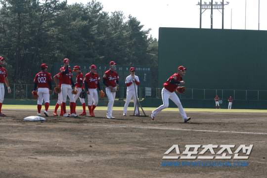 그에 대한 모범 답안을 KIA 타이거즈의 마무리캠프에서 찾을 수 있다. KIA는 지난 10월29일부터 일본 미야자키현 휴가시 오쿠라가하마 구장에서 마무리캠프를 진행 중이다. 주로 2군급 선수들이 참가한 이번 캠프에서 신임 김기태 감독과 새로 조직된 코칭스태프는 선수들을 강도높게 담금질하고 있다. '3일 훈련-1일 휴식'의 사이클로 돌아가는 데 훈련량과 강도가 엄청나다. 훈련이 일단 시작되면 감독과 코치, 선수가 모두 쉬지 않고 톱니바퀴처럼 움직인다. 오죽하면 식사 시간에 "숟가락 들 힘도 없어 밥을 못먹겠다"는 선수도 자주 나올 정도다.