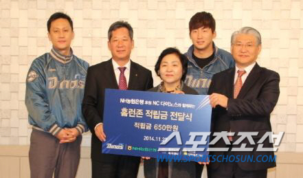 NC 다이노스가 지난 27일 경남 창원시에 위치한 사회복지기관을 찾아 2014시즌 팀기록과 홈런을 통해 적립한 후원금을 전달했다.